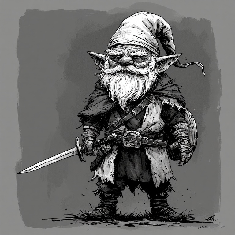 Gnomes can use leather armour and shields. Armour must be tailored to gnomes’ small size. Similarly, they can use any weapon appropriate to their stature (as determined by the referee). They cannot use longbows or two-handed swords.