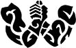 epiction: A four-armed giantess with blood-red skin and twin lion heads that bite at each other. Her upper arms hold a flail and a wavy-bladed sword, the lower arms strangle a writhing serpent.
